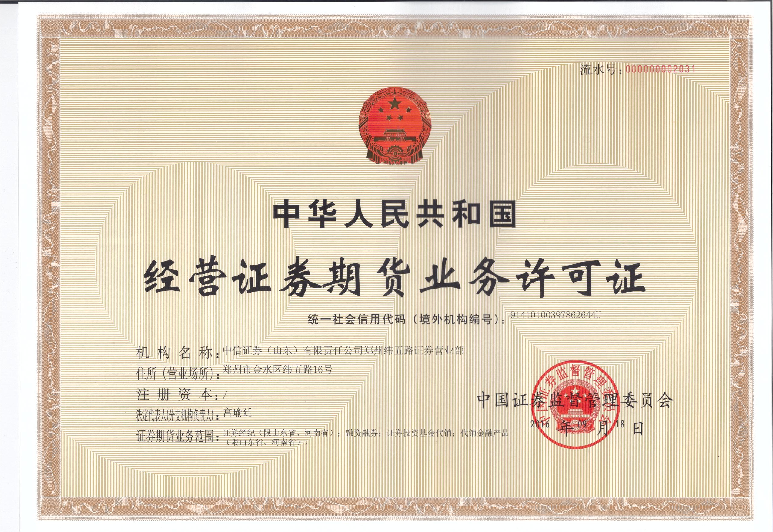 中信证券(山东)有限责任公司郑州纬五路证券营业部