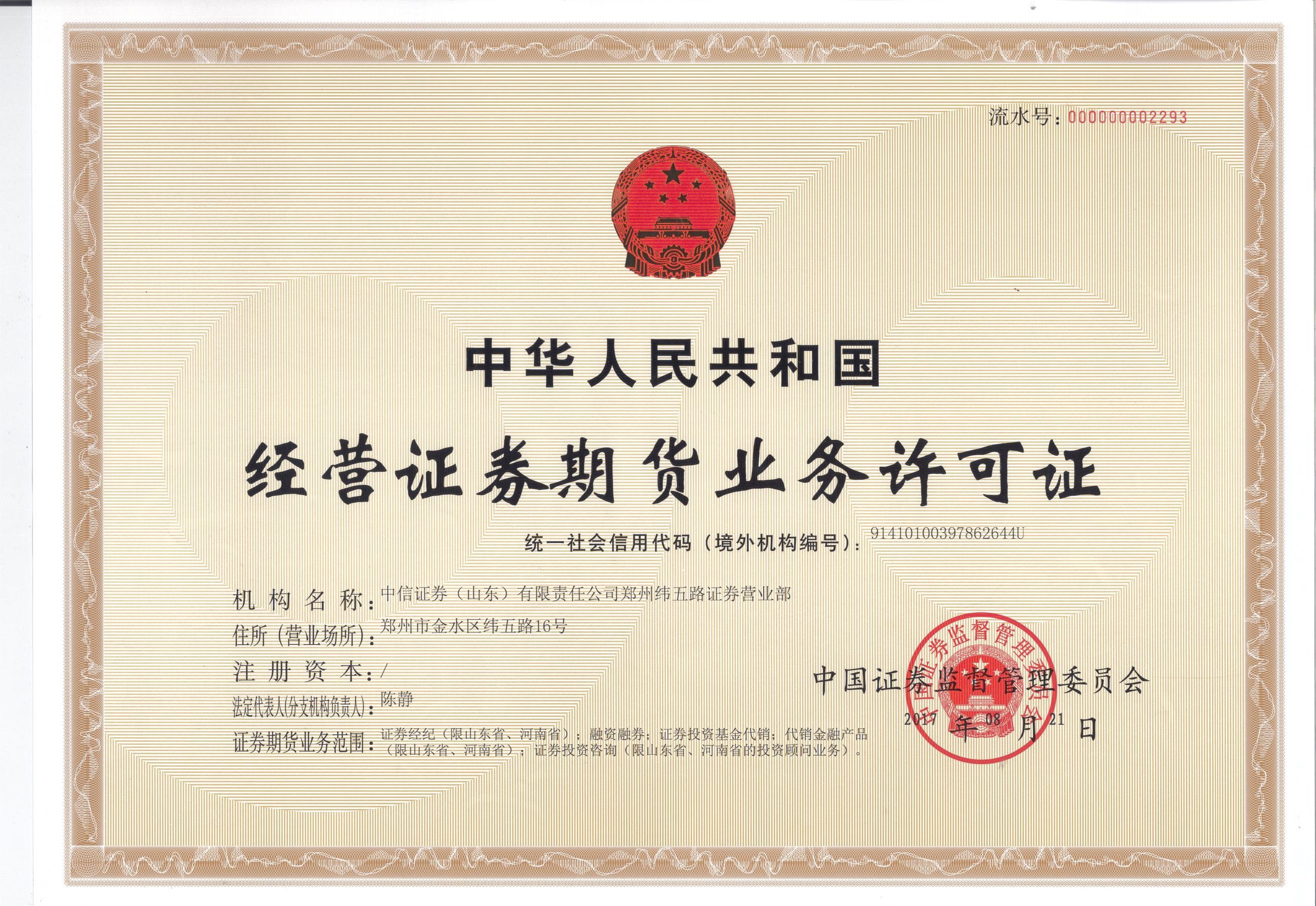 中信证券(山东)有限责任公司郑州纬五路营业部