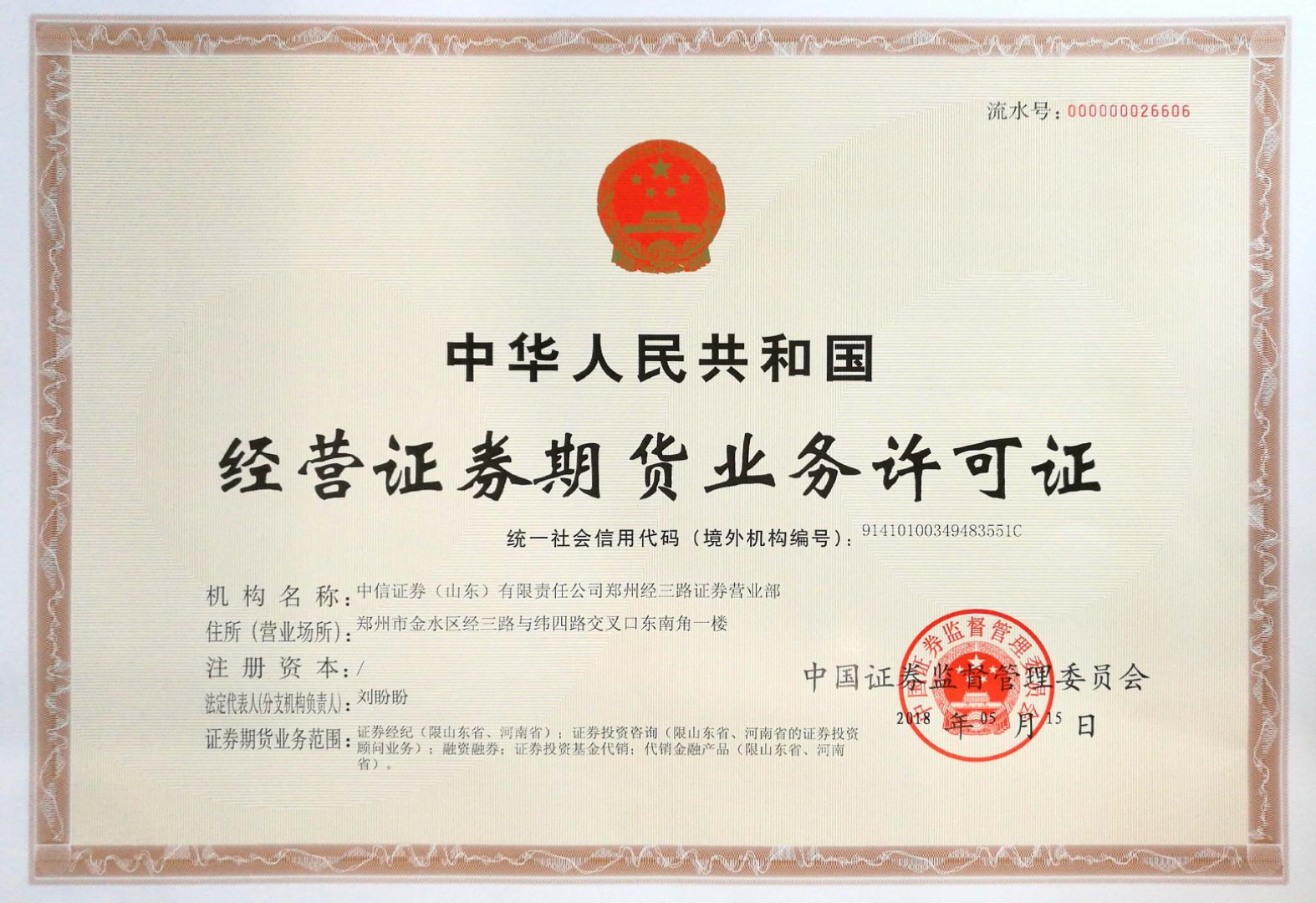 营业部名称:中信证券(山东)有限责任公司郑州经三路证券营业部