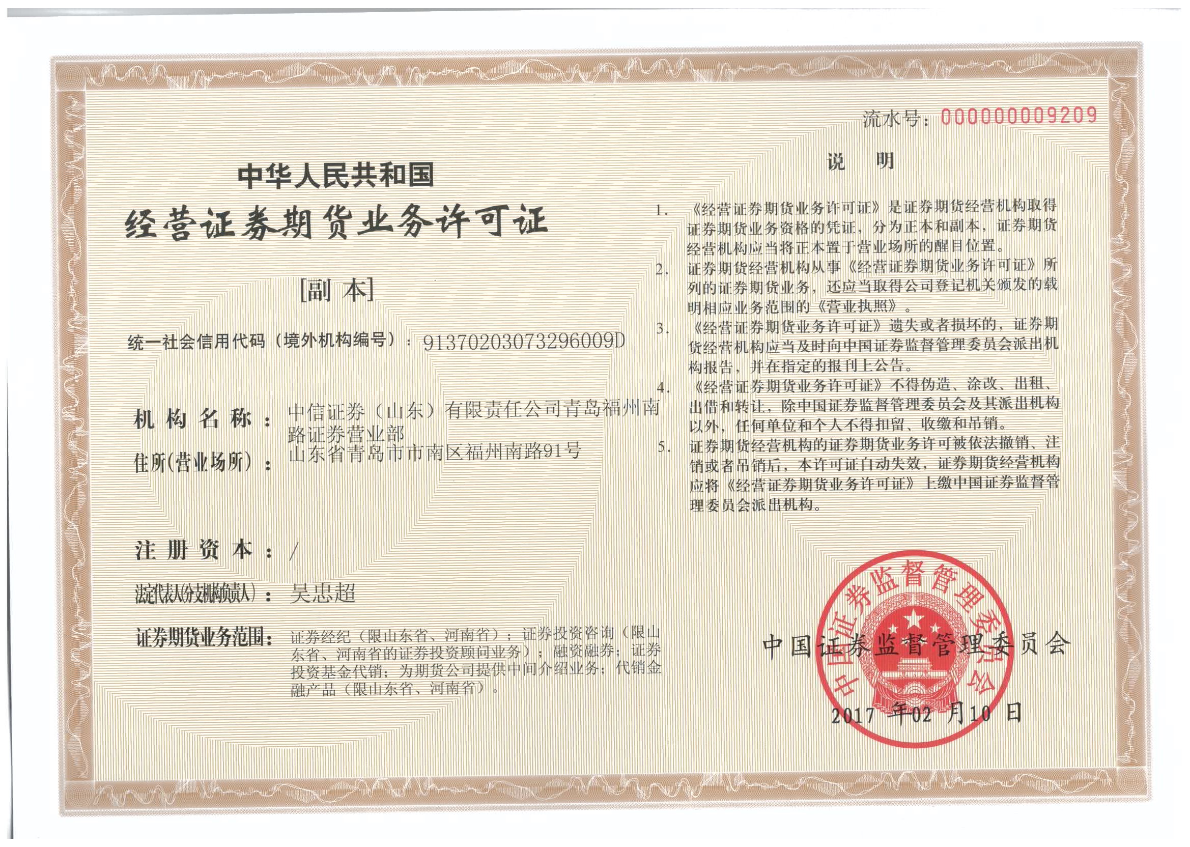 营业部名称:中信证券(山东)有限责任公司青岛福州南路证券营业部
